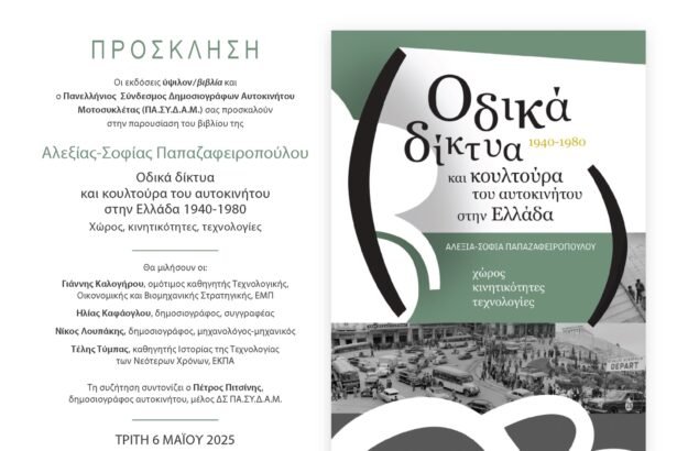 Οι εκδόσεις ύψιλον/βιβλία και ο Πανελλήνιος Σύνδεσμος Δημοσιογράφων Αυτοκινήτου Μοτοσυκλέτας (ΠΑ.ΣΥ.Δ.Α.Μ.) σας προσκαλούν στην παρουσίαση του βιβλίου της Αλεξίας-Σοφίας Παπαζαφειροπούλου…